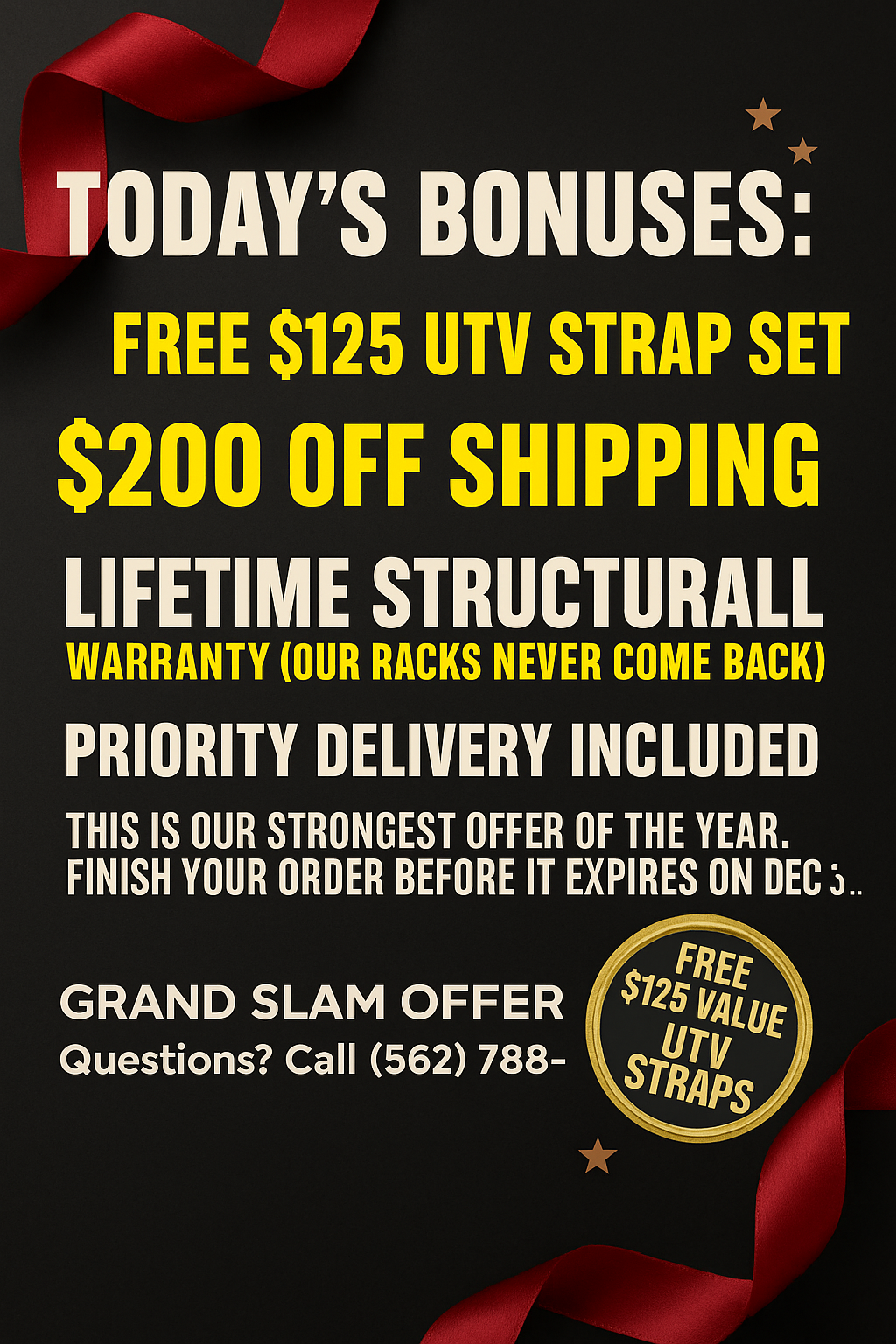 Meet the Aluminum UTV Truck Rack — the evolution of UTV transport. Crafted from 6061-T6 aircraft-grade aluminum, it’s engineered to haul your SxS or UTV above your truck bed while keeping your hitch free for towing a camper or boat. Weighing only 320 lbs, it’s 40 percent lighter than its steel counterpart (520 lbs) yet rated to handle up to 3,000 lbs of load. Whether you own a Polaris RZR, Can-Am X3 Max, or Yamaha Wolverine, this rack delivers the perfect balance of strength, speed, and style.